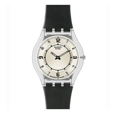 !9#Swatch Women's CORE COLLECTION SFM111 Black Leather Quartz Watch with Silver Dial
